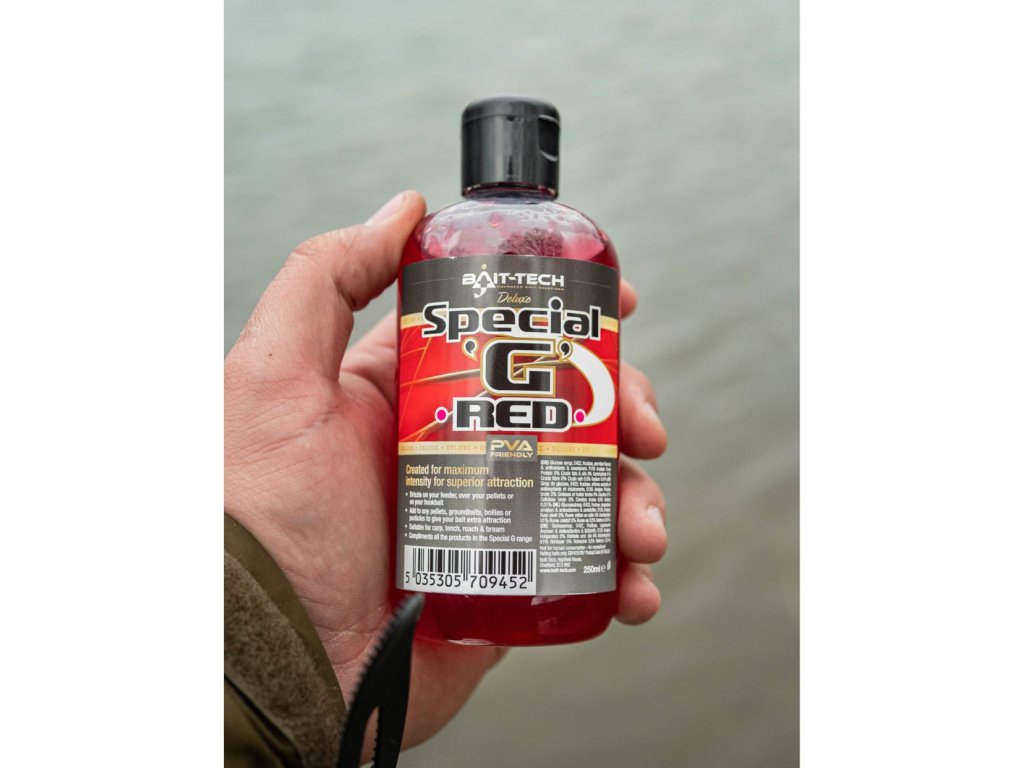 Je vhodná do method mixů, spodových mixů a pro lehké dipování pelet i boilies. Možnost využití je však nekonečná. Pelety, boilie, chléb, Xpands peletky, červi, je možné ji kombinovat, jak vás napadne. Tento tekutý posilovač je možné použit na všecko a všude. V několika příchutích: - Special G Dark - Special G Green - Special G Red - The Juice - KrillDoplňkové parametry