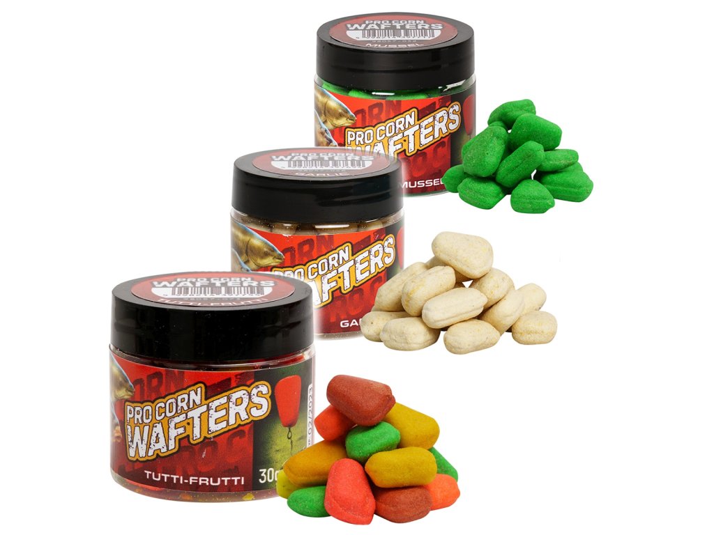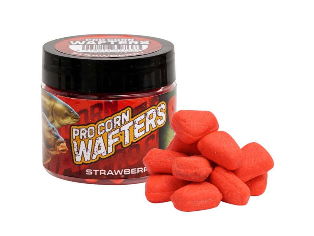Benzár Pro Corn Wafters je série nástrah, které svým tvarem připomínají krmnou kukuřici, nejoblíbenější potravu ryb. Kromě toho se mezi výroobními surovinami nachází několik kukuřičných derivátů, takže nástrahy mají jemnou vůni a chuť kukuřice i v neochucené formě. Velikost 10mm je ideální na method feeder i klasickou lehkou kaprařinu. Kromě kukuřičného tvaru se tyto nástrahy vyznačují i svou vznášivostí, která je nastavena tak, aby ideálně nezvedla háček montáže, ale pouze tak aby zvedla jen háček a ne celý návazec.
