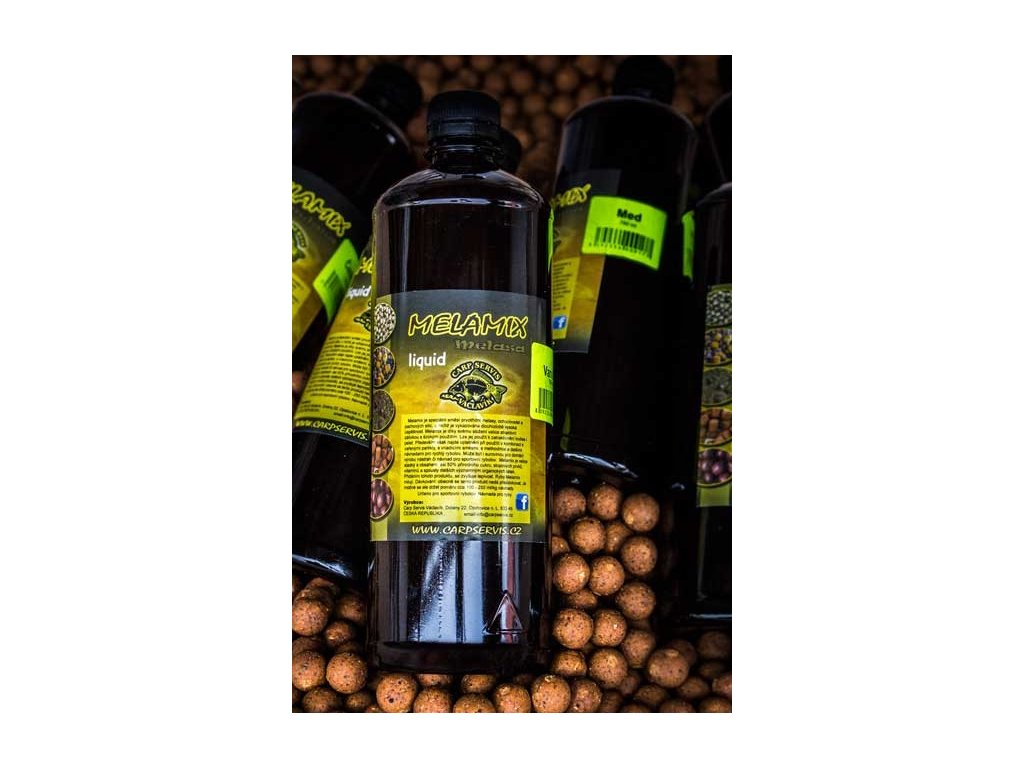 Melamix je díky svému složení velice atraktivní zálivkou s širokým použitím. Lze jej použít k zatraktivnění boilies i pelet. Především však najde uplatněni při použítí v kombinaci s vařenými partikly, s vnadícími směsmi, s methodmixy a dalšími návnadami pro rychlý rybolov. Může být i surovinou pro domácí výrobu nástrah či návnad pro sportovní rybolov. Melamix je velice sladký s obsahem asi 50% přírodního cukru, stopových prvků, vitamínů a spousty dalších významných organických látek. Přidáním tohoto produktu se zvyšuje lepivost celé směsi. Ryby Melamix milují. Dávkování: Obecně se tento produkt nedá předávkovat. Je možné se držet poměru cca 100 - 250 ml/kg návnady. Balení 750 ml.