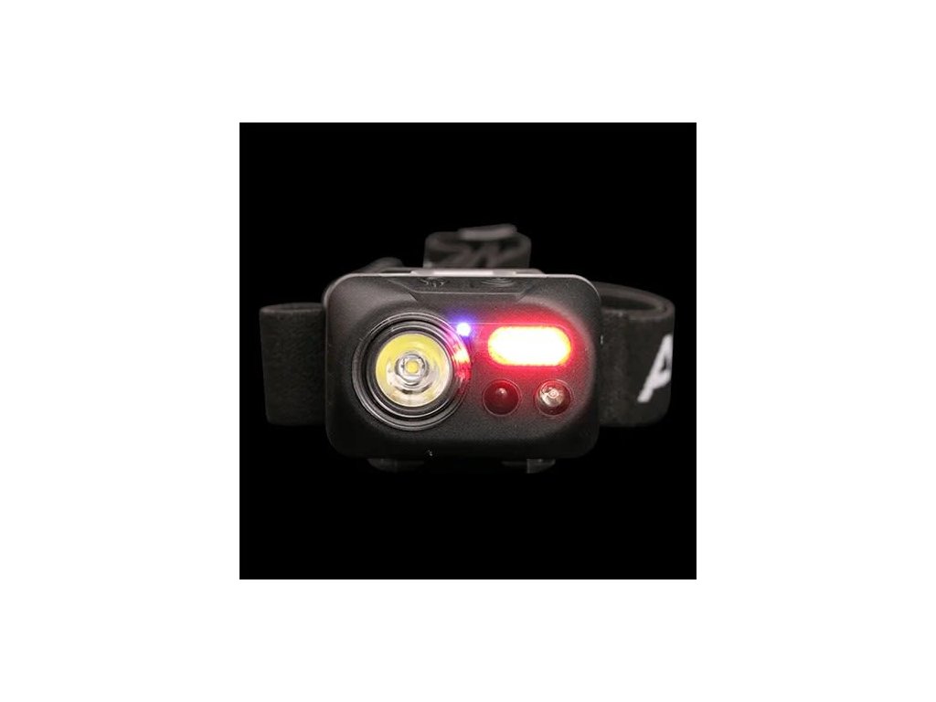 Samozřejmě čelovka má standartní tlačítko, kterým je ovládána a může být i vypnuta. Se dvěma režimy bílého světla a dokonale vyváženým širokoúhlým červeným světlem je ideální pro noční vidění. Přesně ta čelovka, kterou tolik potřebujeme, pokud máme obě ruce plné. Pro rozsvícení čelovky můžeme zvolit dvě varianty. Buď použijeme bezdotykovou variantu, tedy zamáváme čelovce zepředu nebo zvolíme metodu standartní, a to tlačítkovou, tedy čelovku rozsvítíme pomocí tlačítka umístěného na samém vrcholu čelovky. Volba je zcela na vás. A které tlačítko je na co? Standartní tlačítko pro možnost kontrolování světelného výstupu je označeno symbolem pro vypínač. Prvním kliknutím se čelovka dostane do režimu 50 % bílého světla, při dalším kliknutí do režimu 100% bílého světla, poté režim červeného světla a poté se čelovka vypne při dalším kliknutí. Pokud chceme náhle vypnout čelovku v jakémkoliv režimu, dlouze podržíme hlavní vypínač, dokud čelovka nezhasne. Druhé tlačítko se symbolem pro signál, se stará o sensor čelovky. Indikace aktivního sensoru poznáme podle modré kontrolky, tedy víme, že sensor je aktivní. Sensor můžeme také aktivovat, při již zapnuté čelovce, a to zmáčknutím vypínače s tímto symbolem. Pro deaktivace volíme opačný směr. Specifikace: - použité baterie 3 x AAA (nejsou součástí) - výdrž baterií: 5,5 hod na bílé světlo v režimu 100%, 8 hod. Na bílé světlo v režimu 50% - rozměry: 60 x 35 x 44 mm - hmotnost: 68 g (bez baterií) - maximální výstup: 220 Lumenů - voděodolnost: IP X6 - maximální vzdálenost pro aktivaci sensorem: do 15 cmDoplňkové parametry