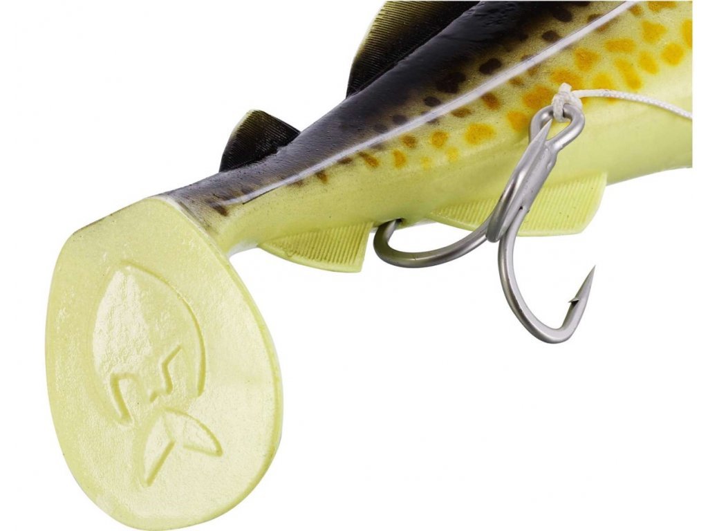 Konstrukčně vychází z tresky tmavé - oblíbené rybí večeře pro velké trofejní exempláře lovící v mořích a na březích kolem Norska. V balení najdete silný a odolný návazec s trojháčkem a dvě různá těla – klasický twister ocas pro pomalý pohyb a ocas typu kopyto, imitující raněnou panickou rybu, který doslova volá sežer mě :-)