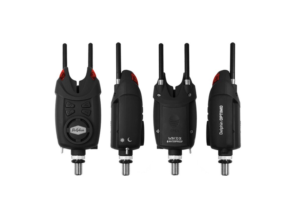 Sada Delphin OPTIMO navazuje na enormní úspěch sad od značky Delphin. Tato sada poskytuje možnost světelné, zvukové i vibrační signalizace. Je 100% voděodolná a signalizátory jsou napájeny 9V bateriemi, což zaručuje dlouhou životnost. Přijímač je napájen 3xAAA bateriemi. Kromě vysoké výdrže patří mezi největší výhodu této sady dosah - až 200 metrů v závislosti na okolních podmínkách! Snag Geary (uši) je možné šroubovat přímo na závity, které se nacházejí na těle signalizátoru, což jednoznačně usnadňuje manipulaci. Při nastavování sady na lovném místě určitě oceníte i 20 sekund trvající tichý mód, během kterého můžete se signalizátory manipulovat bez vydávání tónů. Další možností je nastavení až 6 stupňů citlivosti záběru v rozmezí 1,5-10,5cm. Sada Delphin OPTIMO 9V je tím pravým výrobkem pro opravdové kapraře:-)
