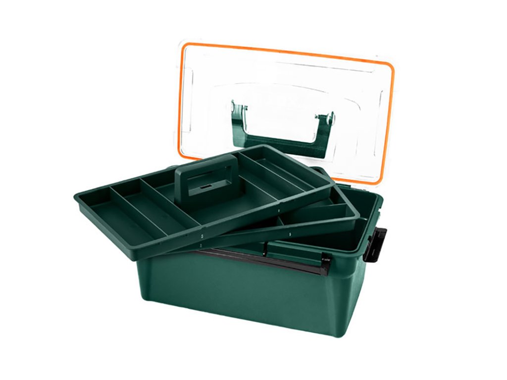 Kufřík Delphin TBX Case Clip je malý vodotěsný kufřík, který se skládá se ze tří odkládacích prostorů, z toho dva jsou vyjímatelné s praktickým úchopem. Celý kufřík je pevně fixován třemi podélnými klipy, které zaručí bezpečnou přepravu nástrah nebo ostatního rybářského příslušenství. Je dodáván v tmavozelené barvě s transparentním víkem, které je vybaveno červenou těsnící gumou po celém jeho obvodu.
