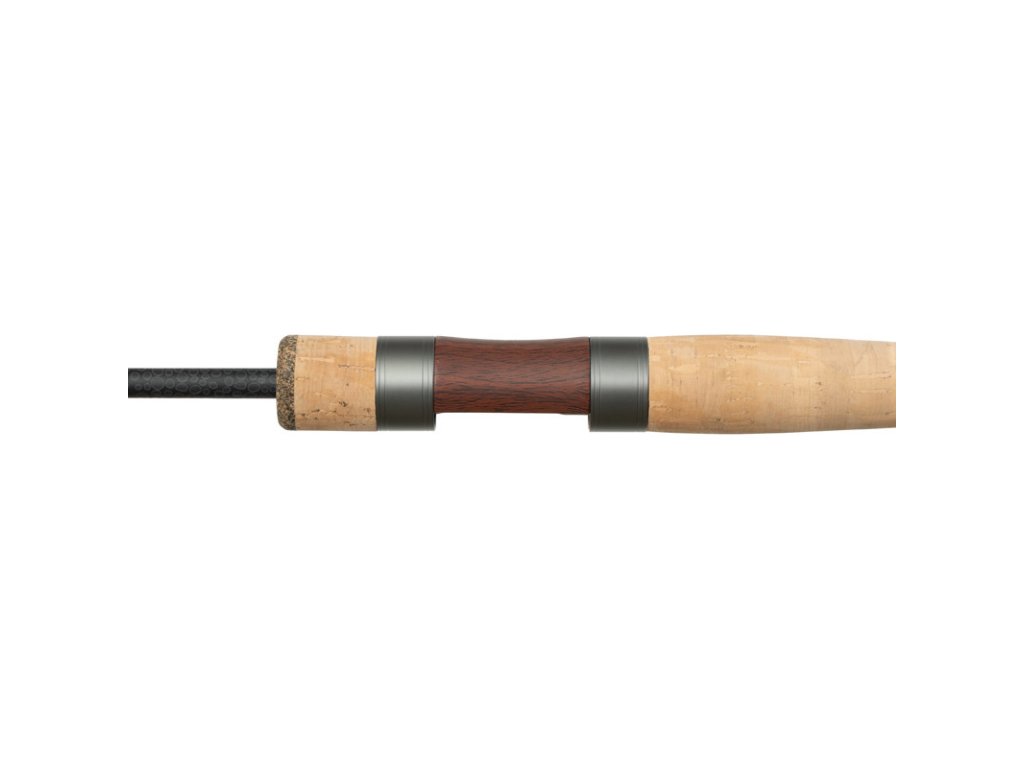 Vizuálně působivým doplňkem prutu je sedlo s imitací dřeva, které dokonale doplňuje korková rukojeť. Použité materiály jsou opravdu kvalitní a ošetřené proti nepříznivým vnějším vlivům. Rukojeť i sedlo byly navrženy tak, aby se prut snadno držel i při několikahodinovém lovu. Výhodou rukojeti je její krátká délka, která zaručuje zvýšenou obratnost při vedení nástrahy, záseku, ale také při zdolávání ryby.
