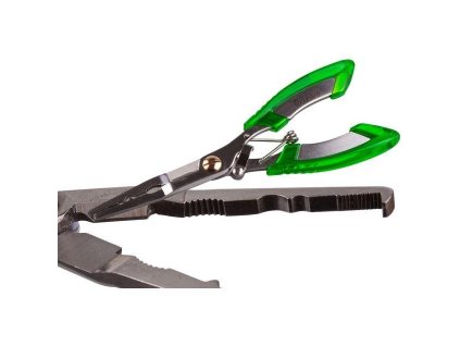 Univerzální multifunkční rybářské nerezové kleště Delphin. Můžete s nimi rozevírat kroužky, stříhat pletenky či lanka, krimpovat trubičky, nebo vytahovat rybám háčky z tlamy.