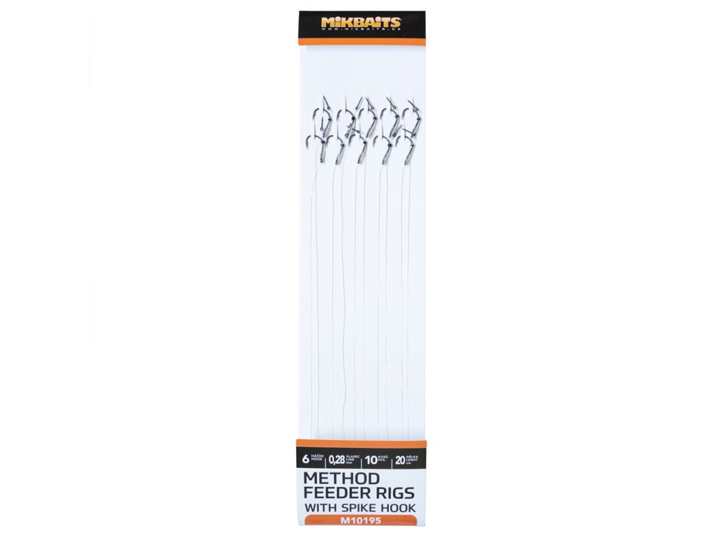 Method feeder návazce se zapichovacím hrotem jsou určené pro malé Pop-up, Wafters, Mini boilie či plovoucí i potápivou kukuřici. K výrobě použili originální japonské feeder háčky a fluorocarbon o délce 20cm.