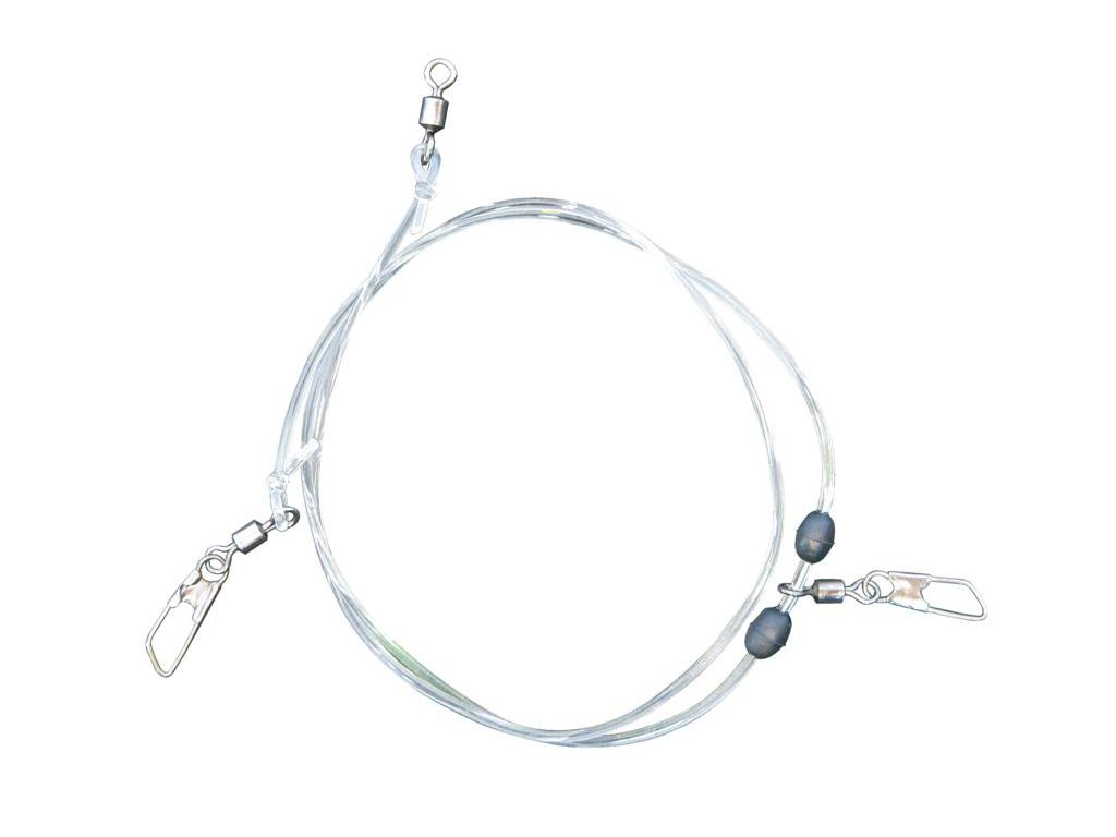 Ručně vázaný kvalitní návazec na fluorocarbonovém vlasci s nosností 20 lb ( 9,1 kg ), který je osazen japonskými háčky.