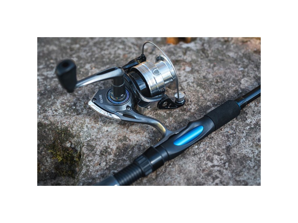 Rybářský set složen z vláčecího dvoudílného prutu Proxima JetSpin a navijáku s přední brzdou Strike 3000FD.