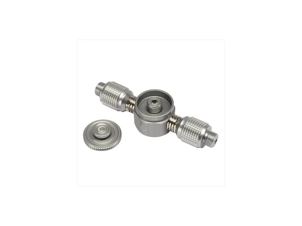 Je vyroben pomocí technologie CNC obrábění z vysoce odolného, spolehlivého a lehkého materiálu jakým je duralumin, tedy směs hliníku a mědi. K dispozici tři 7/16 závitové ventilové výstupy, které lze použít jak jednotlivé, tak v páru či všechny dohromady. Dva boční lze použít právě třeba na vařiče pro komfortnější vaření a vrchní pak třeba na upevnění lampy apod. Dalším kusem, který je včetně tohoto produktu je kruhový stojan, který lze k adaptéru připevnit pomocí dodané horní výstupní šroubovací zásuvky. Ideální pro ukotvení kanystru, když dochází palivo. Produkt je vybaven zpětným ventilem, lépe řečeno samo těsnícím a namontovaným O-kroužkem, který zajišťuje těsnost před únikem, když je připojen k palivové nádrži (EN417). Otočná ramena o 360 stupňů zaručují snadné našroubování hadic do vařičů. Specifikace: - vyrobeno z duralumin (směs hliníku a mědi) - tři 7/16 závitové ventilové výstupy - otočná ramena o 360 stupňů - samo těsnící zpětný ventil s O-kroužken - součástí kruhový stojan - hmotnost: 110 gDoplňkové parametry
