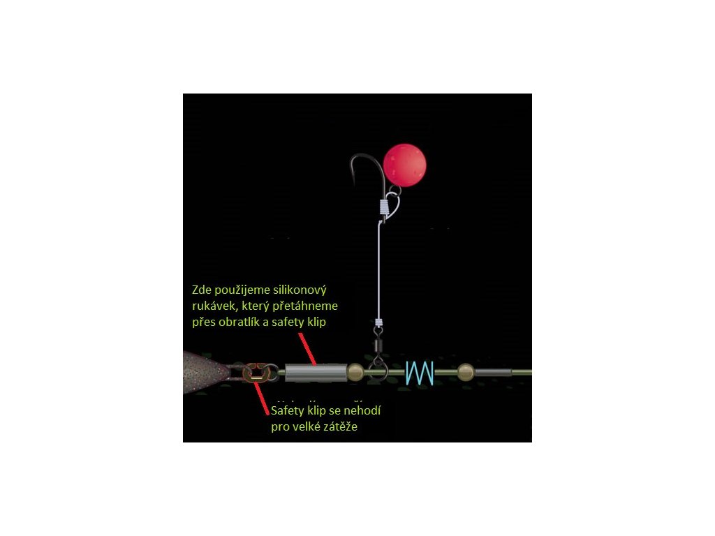 Díky tomuto jednoduchému systému jsem docílí rychlejší a efektivnější volby při změně zátěže. Výborně se hodí pro montáže Helicopter a Chod. A díky jednoduchému přetažení silikonovým rukávkem je návazec se zátěží pevný a trvanlivý. Tvar tohoto Safety klipu se vyznačuje písmenem C, kde v balení nalezneme 12ks standartní velikosti a 12ks pro těžší návazce. Standartní vydrží zátěž okolo 3lb a ta na těžší zátěže pak až 6lb. Nehodí se pro velmi těžké zátěže pro docílení velmi vzdálených míst. Vždy je potřeba nejdříve vyzkoušet, aby vyhovoal naším požadavkům a našemu stylu rybaření.Doplňkové parametry