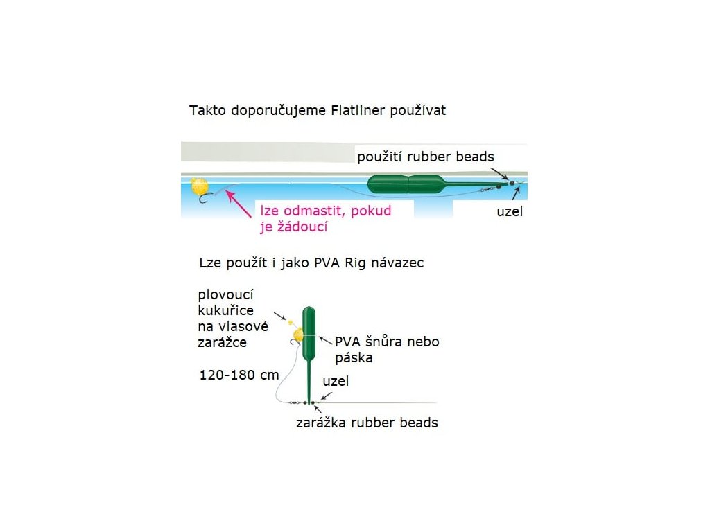 Tyto plovoucí indikátory s názvem Flatliners byly navrženy především proto, aby nerušily a nevířily zvuk pod vodní hladinou, proto zůstávají ležet na vodní hladině bez povšimnutí a neruší tak samotné krmení, přičemž stále nabízejí možnost obou prezentací. Dodává se ve smíšeném balení tří velikostí - malé (13 gramů), střední (20 gramů) a velké (30 gramů). Všechny tři indikátory jsou v matně zelené barvě, která splyne s prostředím. Na boku mají prohlubeň pro vázání nástrah s PVA nebo pro montáže na dlouhé vzdálenosti. Na horní straně je očko pro uvázání na vlasec. Specifikace: - v balení po třech kusech ve třech gramážích - gramáže: malé (13 g), střední (20 g), velké (30 g) - v tmavě zelené barvěDoplňkové parametry