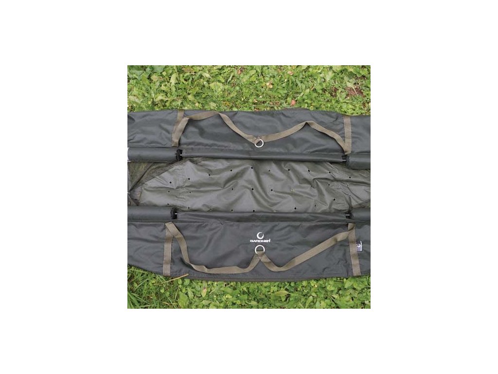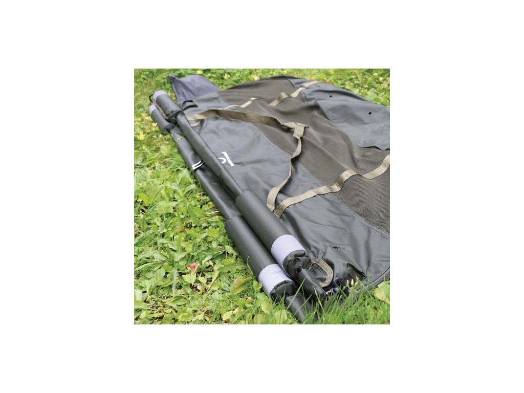 Vrchní část je pokryta z obou stran jemnou clonou, která nechává pozvolna pronikat světlo do jádra saku a tím má ryba pocit, jako by byla pod hladinou vody, je potom více v klidu a lépe spolupracuje. Specifikace: - dlouhá čtyřmetrová šnůra s integrovaným závitem na konci se stará o bezpečné upevnění do zavrtávacích tyčí - dále obsahuje 3/8 BSF klip pro upevnění saku na standartní tyč - Hi-Vis reflektivní popruhy upozorňují na přesnou pozici saku při slabším světle nebo ve tmě - silné sklolaminátové tyče zaručují pevnost a lehkost - zip po celé délce saku zajistí bezpečí pro rybu, zatímco je v saku - sak byl navržen tak, aby ryba měla dostatek místa, ale aby také moc nezpohodlněla, t edy né příliš moc místa na to, aby se mohla otočit - rozměry: 130cm x 60cm - váha ve stavu mokrém bez ryby: 3lb 4ozDoplňkové parametry