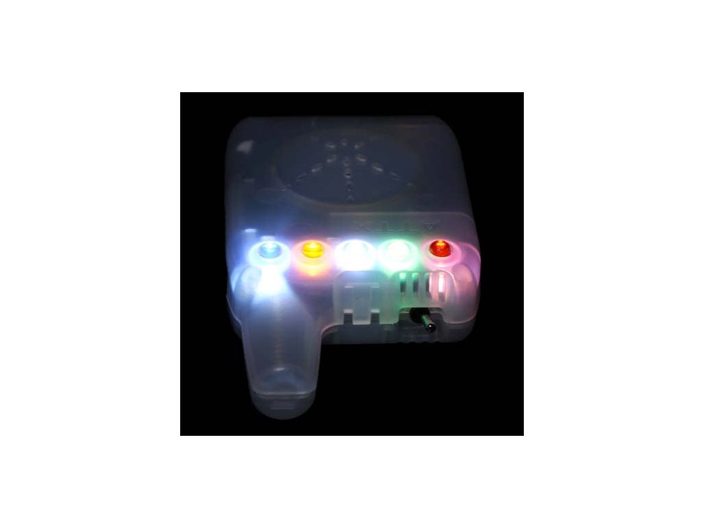 Technické údaje: - 10 předvoleb hlasitosti s novým SSI přechodem do ticha - přes 20 tónů na kanál - dvojité programování na kanál, tím se myslí více než 10 hlav na jeden přijímač - dodáván s 3 různobarevnými čočkami, takže uživatel může zvolit jakoukoli barvu - kratičká anténa – vylepšená řada - 2 AA baterie pro delší životnost baterií (není součástí) - extrémní voděodolnost - transparentní těloDoplňkové parametry
