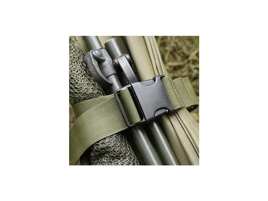 Lze je použit na stažení brolly společně s rozpěrnými tyčemi nebo pro možnost připojení ke složenému lehátku další nezbytné věci. Lze použit na stažení více prutů do sebe pro jednodušší přepravu. Specifikace: - plně nastavitelný popruh pro všechny typy rybářských vozíků - díky tomuto systému mokré věci zůstávají bez kontaktu s ostatními věcmi - ideální pro připevnění mokrých věci zespodu k vozíku - materiál: Heavy Duty nylon s róbustními plastovými klipy - v nabídce v páru - barva: zelená/černáDoplňkové parametry