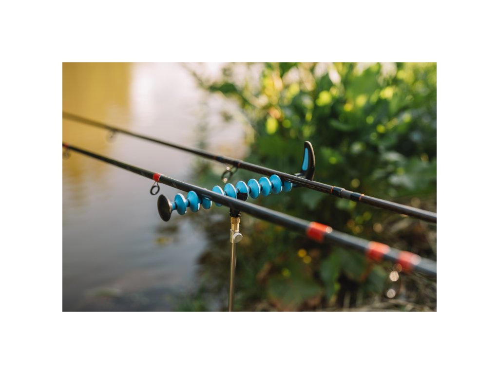 Prvotřídní hliníkové hrazdy na rybářské pruty s vestavěnou vodováhou pro dokonalé položení.