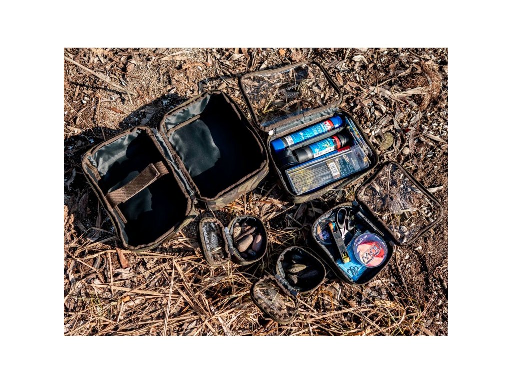 Po otevření naleznete uvnitř čtyři menší pouzdra, do kterých si roztřídíte své rybářské doplňky k lovu. - Vrchní víka pouzder jsou slídová, což usnadňuje přehled o obsahu. - Vyroben z odolného a vodě odpudivého nylonu 210D - Rozměry: 26 x19 x16 cm - Hmotnost: 1,06 kgDoplňkové parametry