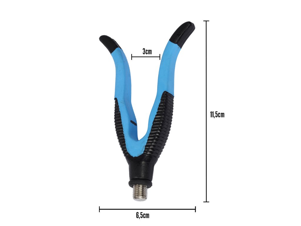 Díky svému tvaru je rohatinka vhodná na různé průměry rukojetí. Doporučujeme na feederové, pickerové a plavačkové pruty. Na závitové části se nachází gumová podložka, která zamezuje otáčení držáku. Šířka: 6,5 cm Výška: 11,5 cm Hmotnost: 40 gDoplňkové parametry