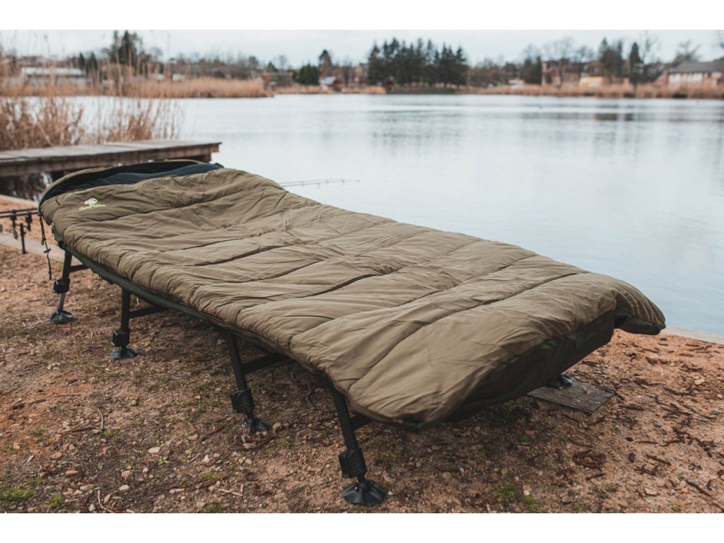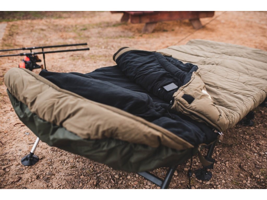 Na vnější vrstvu, byl použit velmi příjemný a nešustící materiál „ Peach Skin “ broskvová kůže. Tento materiál má tyto vlastnosti, je nepromokavý a dýchatelný. Plně prošívaný microfleece černé barvy je vyplněn 100% dutým vláknem pro extrémní teplo a komfort. Ve vnitřní části spacího pytle naleznete kapsu na zip, která je určena pro mobilní telefon. Pod hlavou je na zip odnímatelný polštářek, který zajistí opravdový komfort. Na obou stranách spacího pytle (u hlavy a nohou) jsou ze spodu našité převleky, které se pouze přetáhnou přes vršek a spodek lehátka a zajistí tak neomezený a bezpečný pohyb. Ve střední části spacího pytle je popruh, který se díky přezce snadno upevní k lehátku a zabrání kroucení spacího pytle. Spací pytel je dodáván s přenosnou a zesílenou kompresní taškou. Rozměry: 220x100x8cm Přepravní rozměry s taškou: 43 (průměr) x 56 cm Hmotnost: 4,5kg Tepelný komfort: -15C Extrém do: - 20CDoplňkové parametry