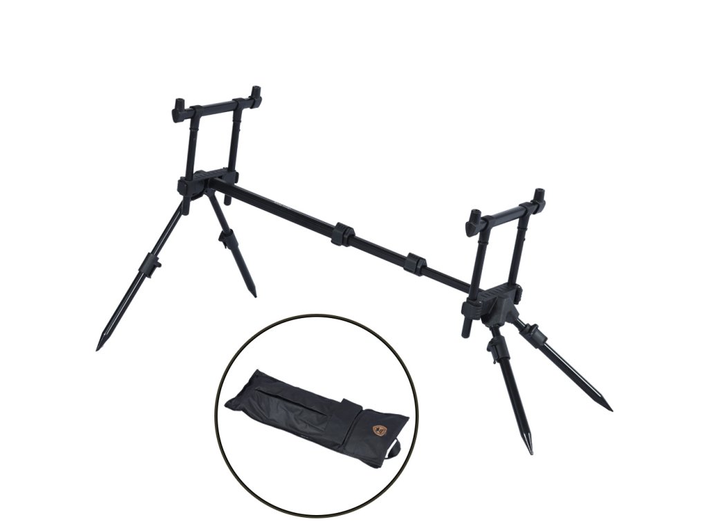 Ideální parťák na krátké výpravy, kde potřebujete minimalizovat svou výbavu, nebo na místa kde jdete za kapry pěšky. Po sestavení poskytuje stojan krásných 85 cm mezi hrazdami, což je dostatečné pro snadné umístění vašich prutů. Stojan se snadno a rychle staví a je dodáván včetně hrazd na dva pruty. Součásti stojanu je praktický obal. Hlavní středová část stojanu je teleskopická a skládá se ze tří dílů, díky tomu je ultrakompaktní a nezabírá více místa ve vaší výbavě.