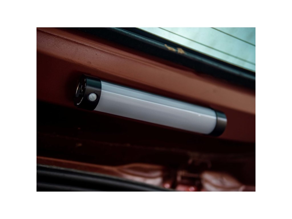 Vysoce kvalitní outdoorová lucerna, která obsahuje nabíjecí baterii s vysokou výdrží. Baterie se nabíjí pomocí USB kabelu, který je součástí výrobku. Lucerna je odolná vůči vlhkosti a díky svým kompaktním rozměrům se hodí každému, kdo rád tráví čas v přírodě. Součástí jsou dvě závěsné šňůrky, které se přichytí do bočních oček lucerny. Tělo lampy je magnetické, tudíž ji snadno uchytíte na kovové předměty. Lampa je dále dodávána s kovovým páskem, díky němuž jí můžete uchytit na stan či přístřešek. Specifikace: - vstup: DC5V/0,7 A - počet lumenů: 100 LM )Max) - typ baterie: Li-ion 3,7 V/2000 mAH/ 7,4 WH - výdrž baterie až 200 h - doba nabíjení: 4 – 5 h - operační teplota: 0 – 40°C - teplota pro uchování : -10+50°C Operační režim: Bílé světlo: 3%, 100% Červené světlo: 3%, 100%, SOS 1. Krátké stisknutí tlačítka On/Off bílé světlo 3%, opětné krátké stisknutí bílé světlo 100%, opětné krátké stisknutí vypnutí lucerny 2. V jakémkoliv režimu světla podržet tlačítko On/Off po dobu 2 sekund, dojde k vypnutí lucerny. Při stisknutí dvakrát za sebou tlačítka On/Off dojde k přepnutí na červené světlo. 3. Dálkový ovladač nebude fungovat, pokud při vypnutí budeme dlouze držet tlačítko On/Off. 4. Dálkový ovladač bude fungovat, pokud při vypnutí stiskneme tlačítko On/Off krátce. Pro volbu barvy světla vybíráme na dálkovém ovladači tlačítka tomu určená (White – bílé světlo, Red – červené světlo). 5. Dosah dálkového ovladače je v rozmezí 7 až 14 metrů. 6. Před použitím dálkového ovladače odejměte pojistku pro aktivaci baterií. Rozměry a hmotnost: 20 x 3,5 x 3,5 cm 183 gDoplňkové parametry