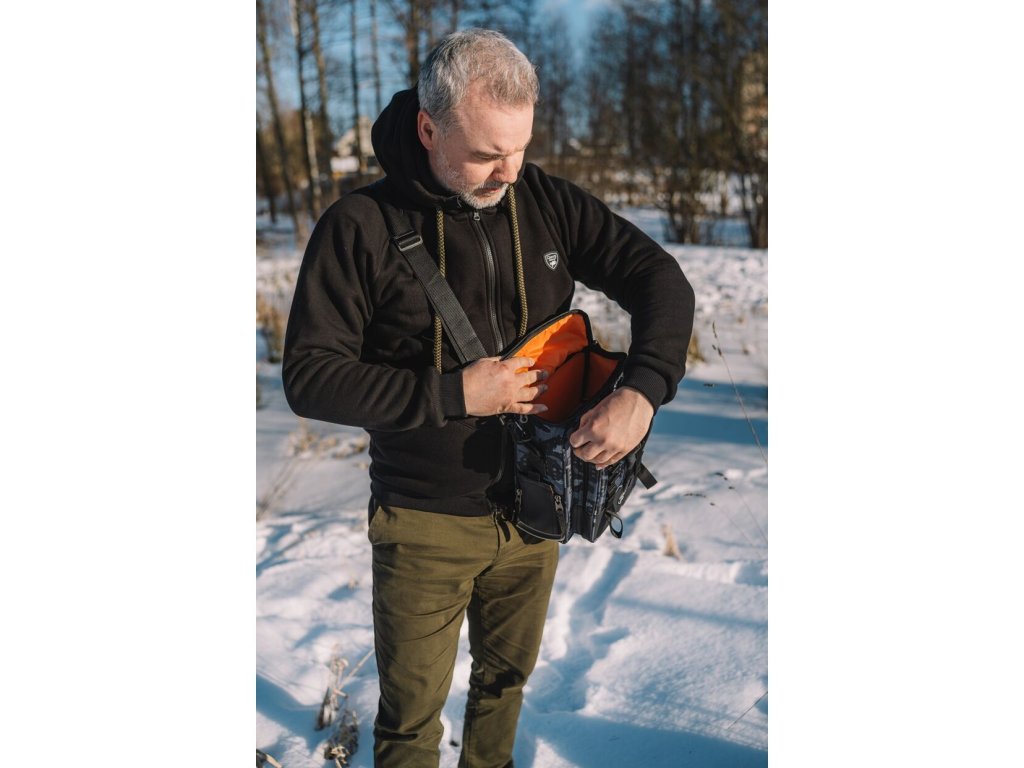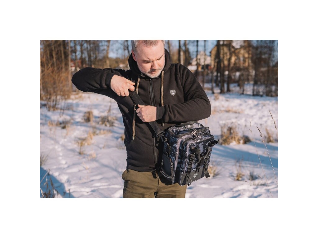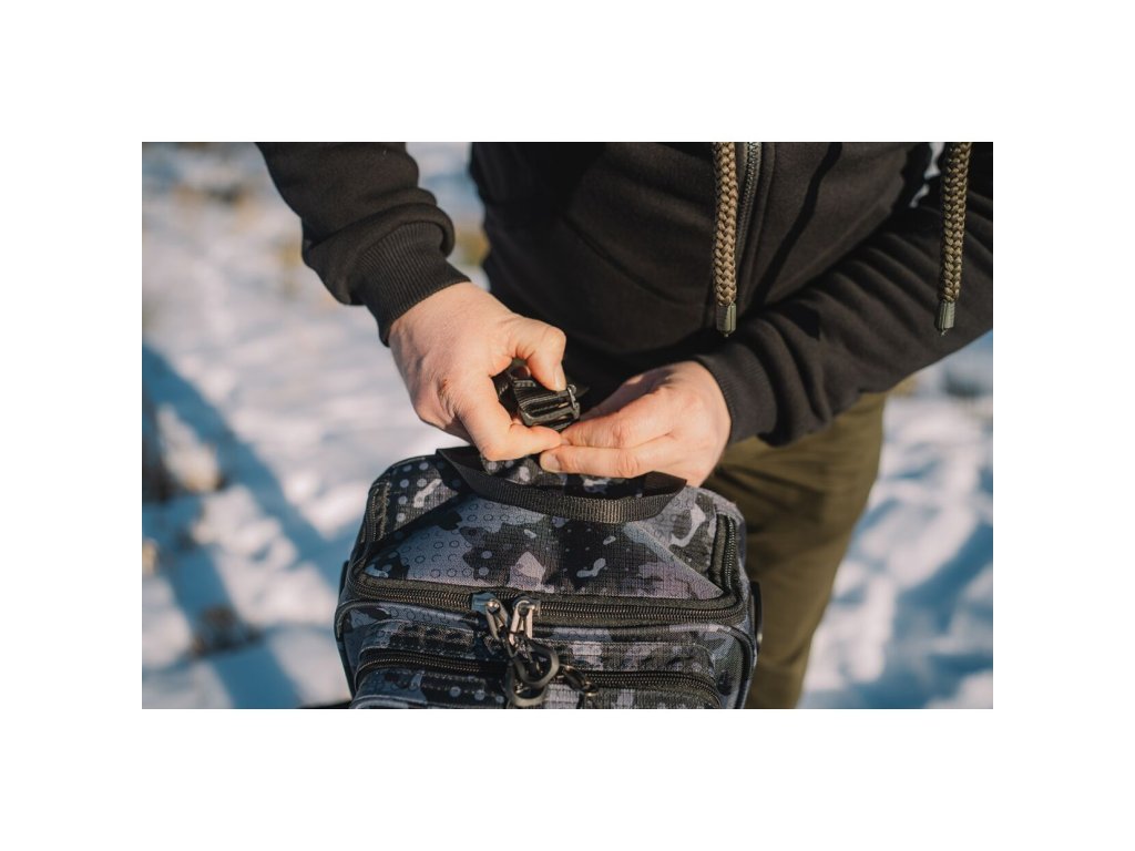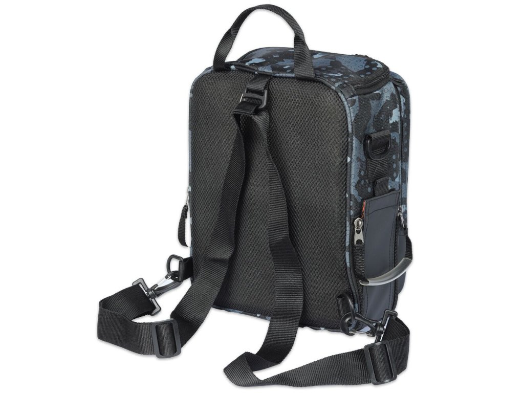 - Různé způsoby nošení, díky výměnnému ramennímu popruhu - Speciální poutka určená pro zavěšení prutů a kleští - Obsahuje jednu větší plastovou krabičku a dvě střední - Snadný přístup do zavazadla z různých stran - Atraktivní maskáčové provedení v černo-šedé barvě - Vodě odolný nylonový materiál 420D - Rozměry batohu: 31x25x14cm - Rozměry krabiček: 1x 27x17,5x4cm / 2x 23x12x4,5cm - Hmotnost: 1,17kgDoplňkové parametry