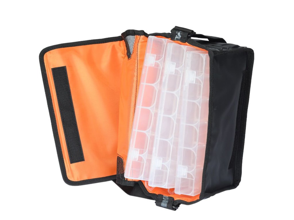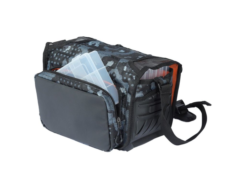 - Kombinované madlo přes rameno má integrovaný měkčený úchyt - Dvě kapsy na přední a zadní straně, každá obsahuje menší krabičku - Tři plastové krabičky, jsou umístěny v hlavní části tašky - Tvrzené gumové dno tašky, které zajistí maximální ochranu - Vodě odolný nylonový maskáčový materiál s označením 420D - Dva držáky na kleště - Rozměry tašky: 29x27x20cm - Rozměry krabiček: Menší: 20x13x4cm / Větší: 27,5x18x4,2cm - Hmotnost: 1,58kgDoplňkové parametry
