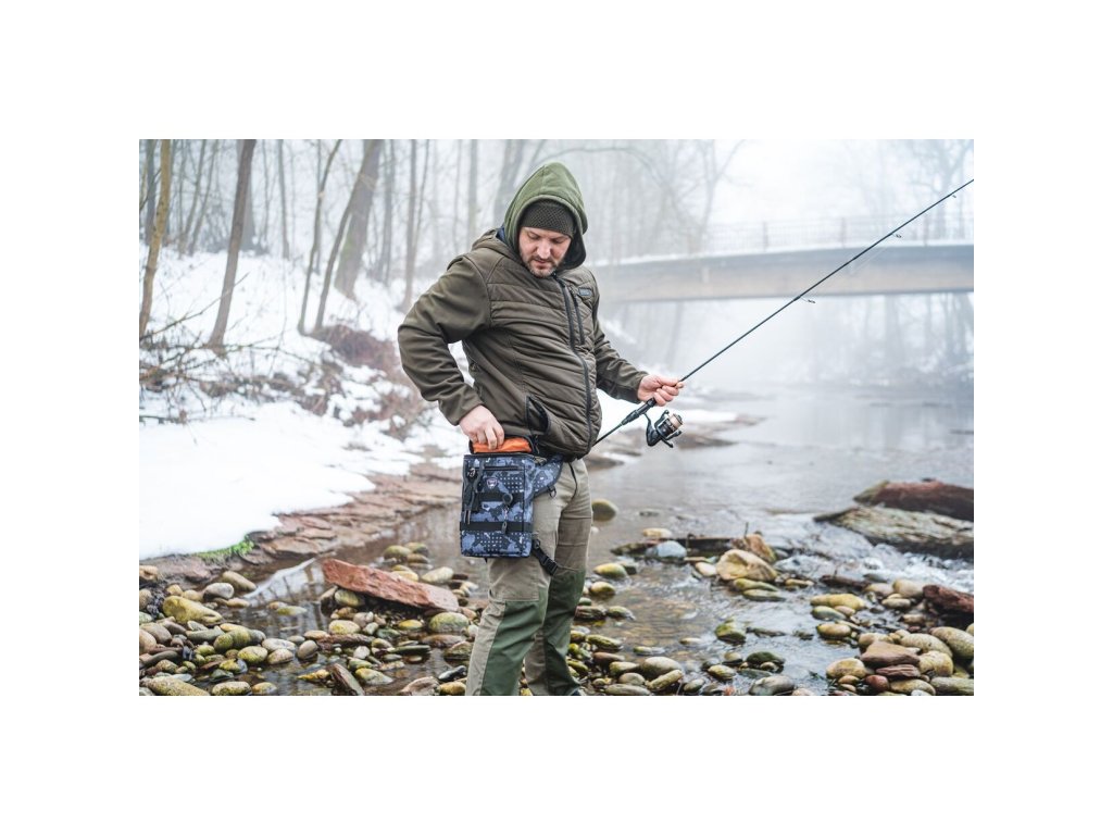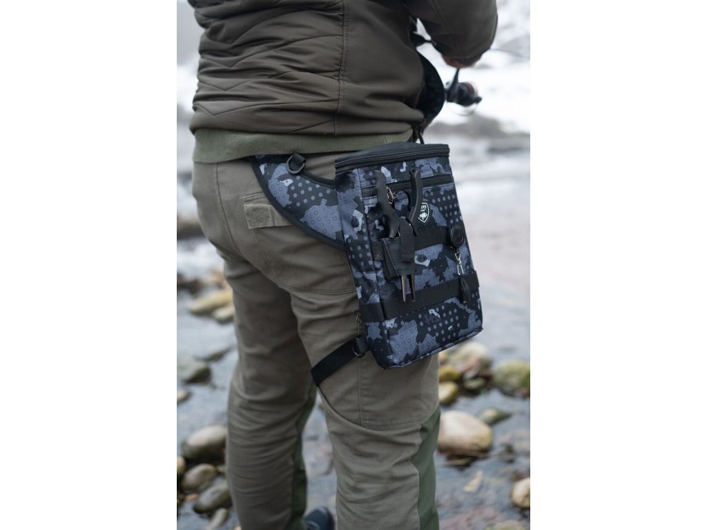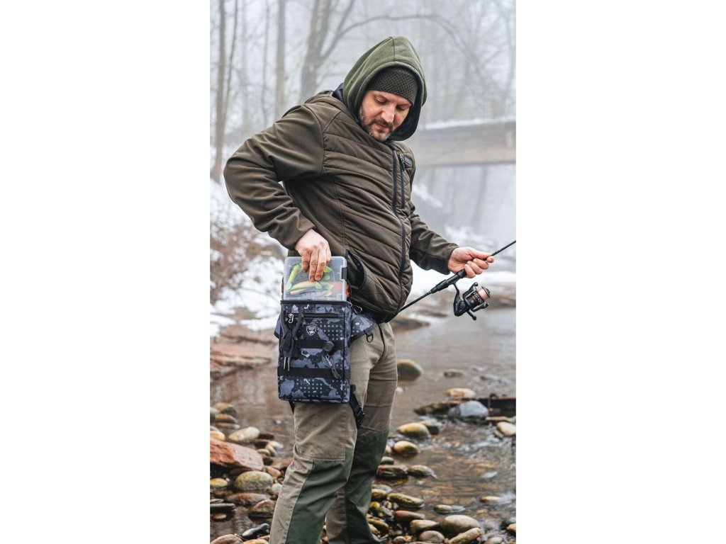 - Vrchní popruh připevněte k pasu a ten spodní k stehnu - Obsahuje plastovou krabičku a kapsu na kleště - Plastová krabička má 18 nastavitelných přihrádek - Cvakátko na vlasec, které je uchyceno na joju - Vodě odolný nylonový maskáčový materiál 420D - Rozměry tašky: 19x5x29cm - Rozměry krabičky: 27,5x17x4,2cm - Hmotnost: 0,54kgDoplňkové parametry