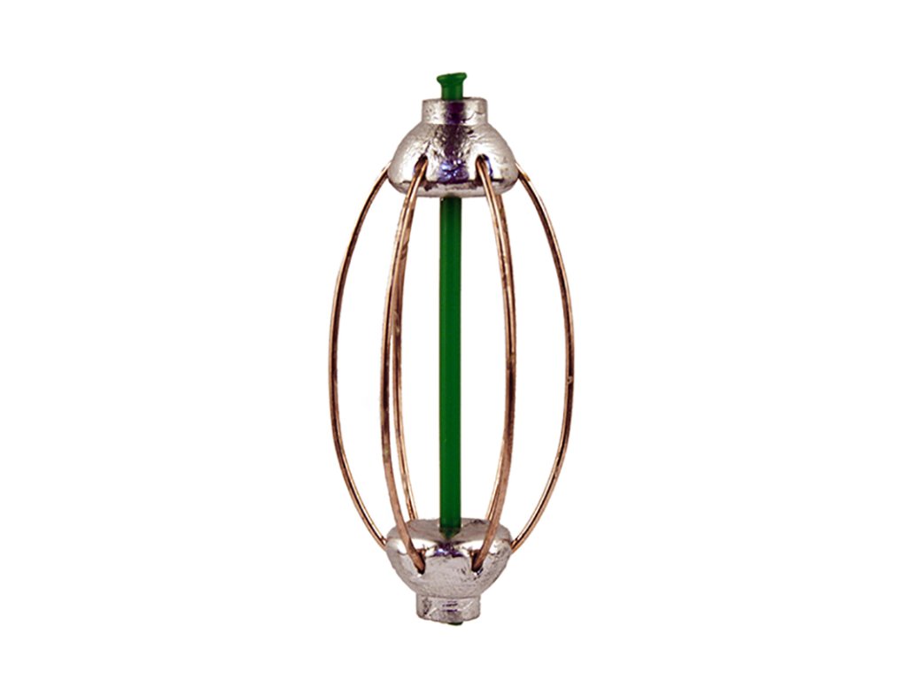 Klasická koncová drátěná krmítka s excentrickou zátěží, která zabraňuje motání za letu.