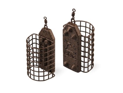 Skvěle vyvážená krmítka aerodynamického tvaru s výměnným systémem - dřík lze vysunout z klece a krmítko vyměnit za menší/větší. Jedna část klece je z těžké zinkové slitiny, díky čemu vždy dopadne na tuto zatíženou strnu. Otevřená (plastová) část klece slouží k vložení háčku s nástrahou.