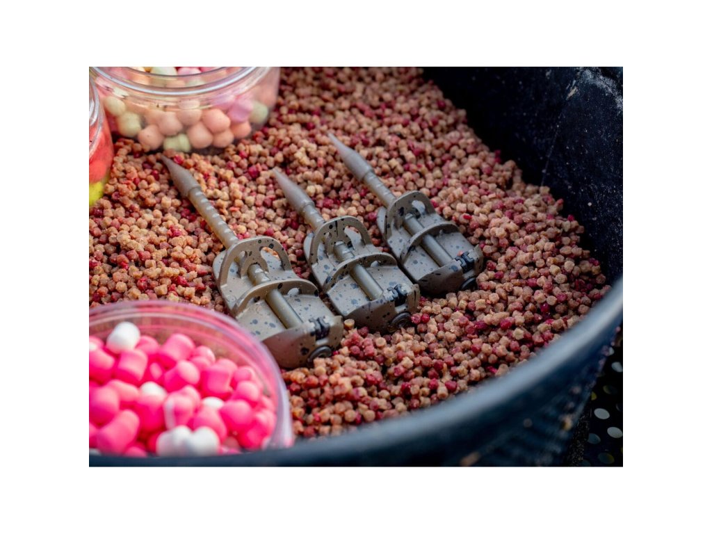 Unikátní navržení šikmé základny přispívá k vytváření menšího výtlaku vody při dopadu na vodní hladinu. Díky ni nedochází k uvolnění návnady na krmítku a jejímu vypadnutí při dopadu při nahazování. Vyznačuje se i menším hlukem při kontaktu s vodní hladinou. Každé krmítko je vybaveno měkkou gumovou sponou, která zachovává délku háčku a zajišťuje, že háček zůstane po celou dobu na svém místě. Ta také umožňuje nastavit délku pro háček a směr hrotu háčku, kdy při zaseknutí se snadno uvolní ze sevření pro bezpečnost zaseknutí. Specifikace: - bezolovnaté - hmotnost: 32 gDoplňkové parametry