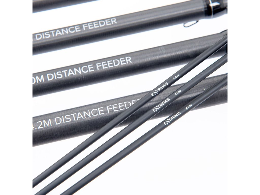 Distanční pruty vyžadují dostatečnou sílu pro možnost dalekých hodů, ale zároveň musí být dostatečně jemné právě pro tu nutnost, aby nedošlo k rychlému vytažení ryby, což bývá často problémem právě u distančních prutů. A právě proto jsme strávili dva roky zdokonalováním všech tří modelů, abychom zajistili rovnováhu mezi házením na vzdálenost, ale zároveň jednotlivým blankům zachovali jejich hravost a akci při zdolávání. A výsledkem jsou právě tyto pruty Extremis Distance Feeder. Specifikace: - ultra modulovaný vysoce odolný blank z uhlíku s označením H.M.C. - parabolická akce prutu - unikátní design rukojeti - vodící očka American TI Force Air - zvětšená očka zvyšují hladší a delší hody - odhozová zátěž: 25-80 g - celková délka: 3,90 m - očko na zavěšení háčku - šroubovací sedlo navijáku - včetně tří náhradních uhlíkových feeder špiček (2.5 oz, 3.0 oz a 4.0 oz)Doplňkové parametry