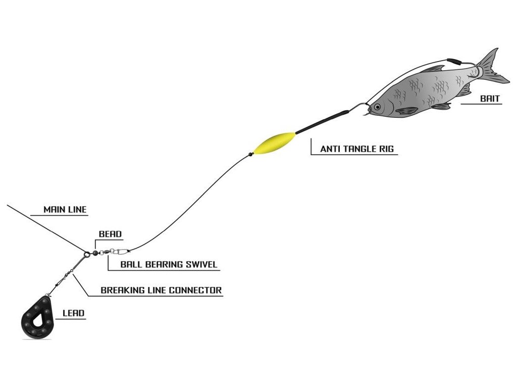 Hotový návazec Waller Spezial od Stefana Seuße. Návazec „Anti tangle Rig“ se výtečně hodí pro prezentaci nástražních ryb a jiných přírodních nástrah těsně nade dnem na vodách se silným rybářským tlakem. Lehký a nenápadný podvodní splávek zvedne nástrahu přesně do zorného úhlu lovících sumců. Nástražní ryba je v přední hlavové části fixována klasickým jednoháčkem a v zadní části u ocasu pak háčkem typu Ghosthook s fixačním hrotem. Díky kombinaci silného monofilního vlasce a kvalitní pletenky je montáž tuhá a poddajná přesně tam kde je potřeba :-)