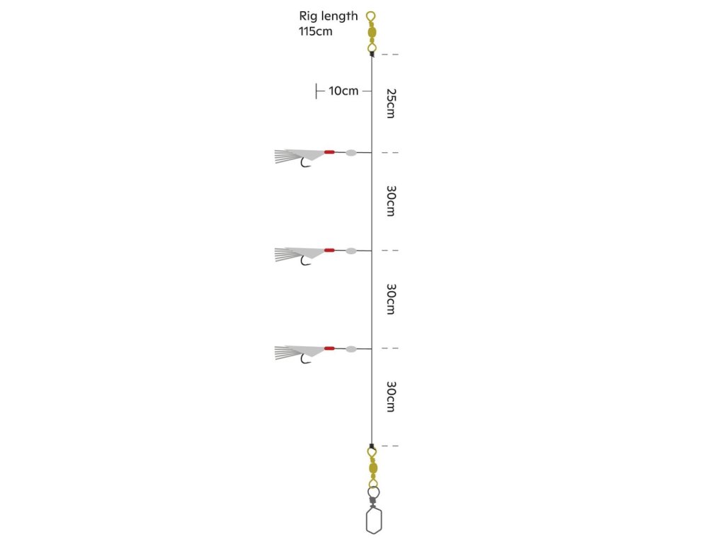 Návazec pro mořský rybolov v Norsku - Klasický okouníkový návazec se šesti háčky 2/0