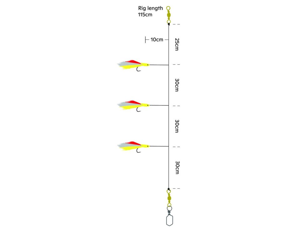 Návazec na mořský rybolov Kinetic Trio RIG - Univerzálně použitelný návazec na makrely, tresky obecné i kelery a další druhy ryb. Včetně pevného obrtlíku a karabiny k rychlé...