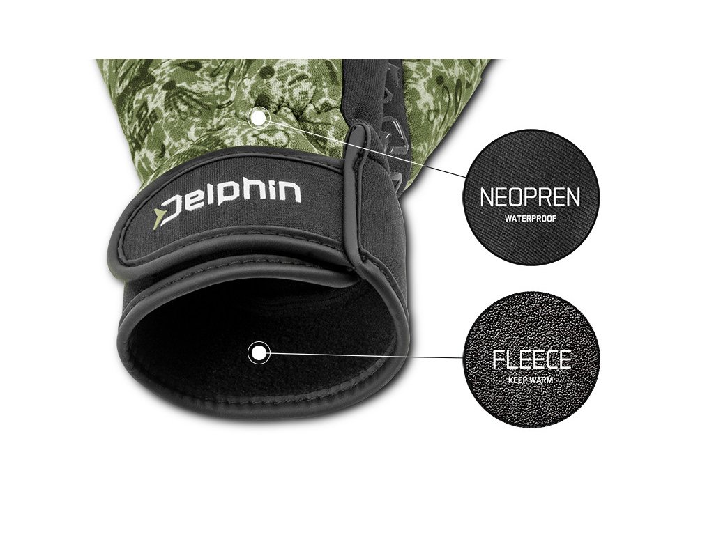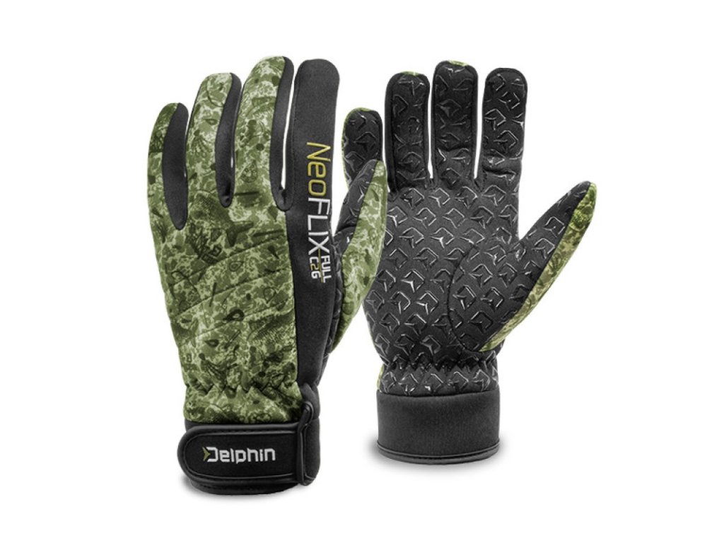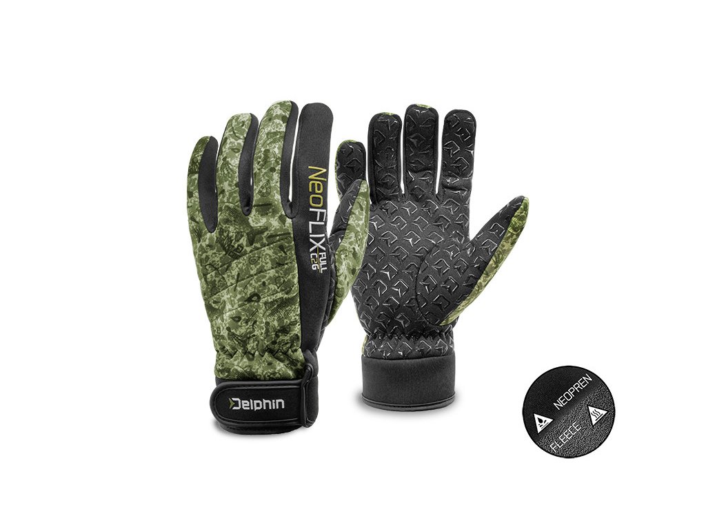 Neoprenové rukavice Delphin NeoFLIX jsou dokonalým doplňkem pro zachování rukou v teple a suchu. Oproti standardním neoprenovým rukavicím přidali dovnitř tenkou fleecovou vrstvu, což posouvá level komfortu při rybaření na novou úroveň. Velkou výhodou je také protiskluzová plocha na dlani, která je opatřena pogumovanou vrstvou s logy značky Delphin.