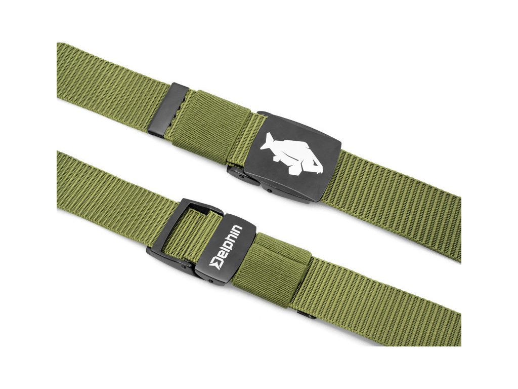 Skládá se z kovové přezky v matném černém provedení s motivem kapra. Přezka je vybavena jednoduchým mechanismem, pomocí kterého lze opasek zajistit na požadované délce. Samotný pásek je vyroben z hrubé a odolné tkaniny KHAKI zelené barvy a je dostatečně dlouhý, takže si jej můžete zkrátit podle své potřeby. Opasek Delphin OutLINE je doplněk, který by určitě neměl chybět ve vašem rybářském šatníku.