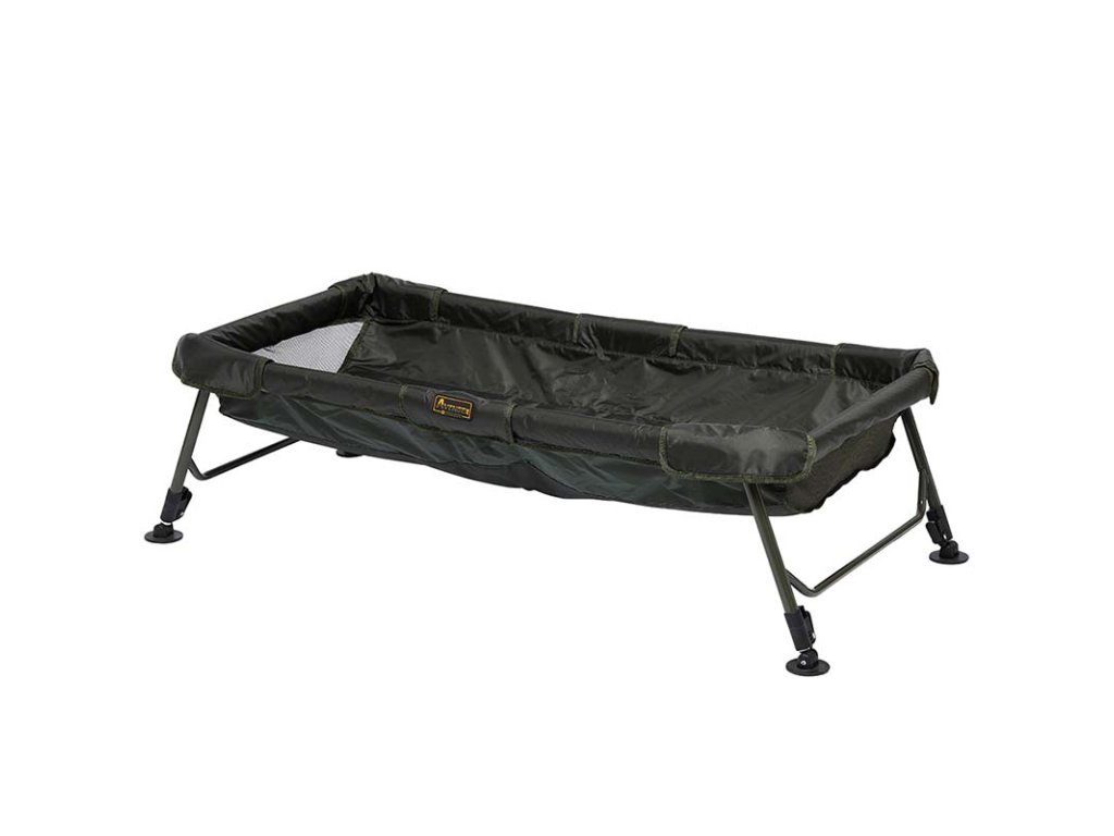 Pokud chcete svému úlovku dopřát naprosté bezpečí při manipulaci na břehu, není lepší volby. Podložka z velmi měkkého PVC a velmi dobře vypolstrovaná. Na krátkých stranách je pevná, ale jemná gumová síťovina pro odvod přebytečné vody. Celá podložka je výškově nastavitelná a je tak stabilní na jakémkoliv povrchu. Konstrukce je lehká, avšak velmi tuhá díky robustním ocelovým profilům. Součástí transportní obal na zip. Doporučujeme pro opravdu náročné kapraře!! K dispozici dvě velikosti.