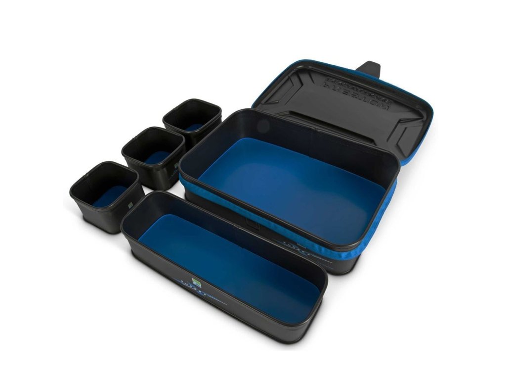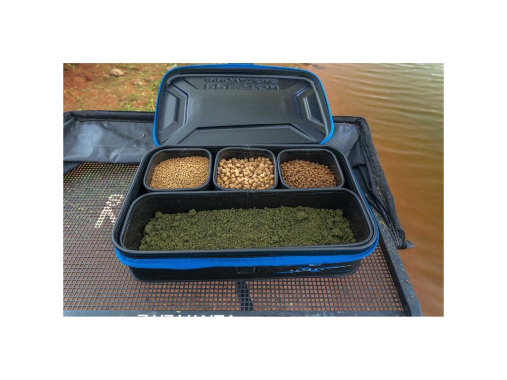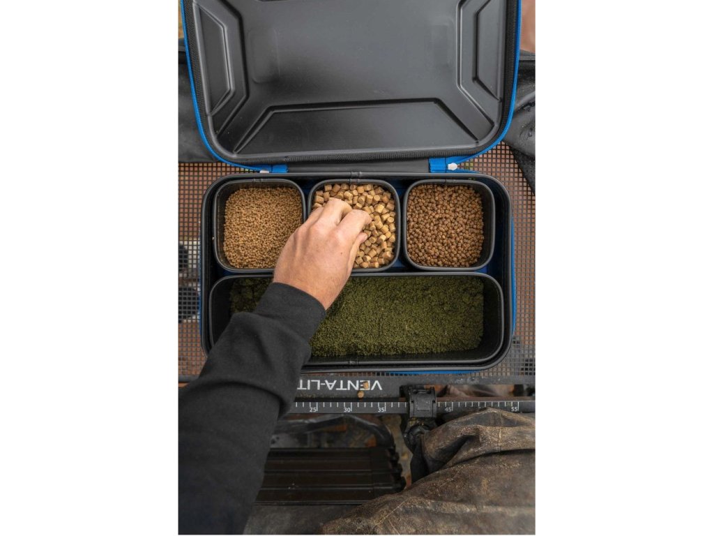 Oriigginálně navržený EVA box pro uložení návnad, který vám umožní přenášet k vodě několik misek s návnadami nebo drobné příslušenství. Dodává se se 4 miskami - 3x 12x12x7,5 a 1x 38x12x7,5cm. Víko má zapínání na zip jednoduchý magnetický pant, který umožňuje rychlé otevírání a zavírání za nepříznivého počasí.