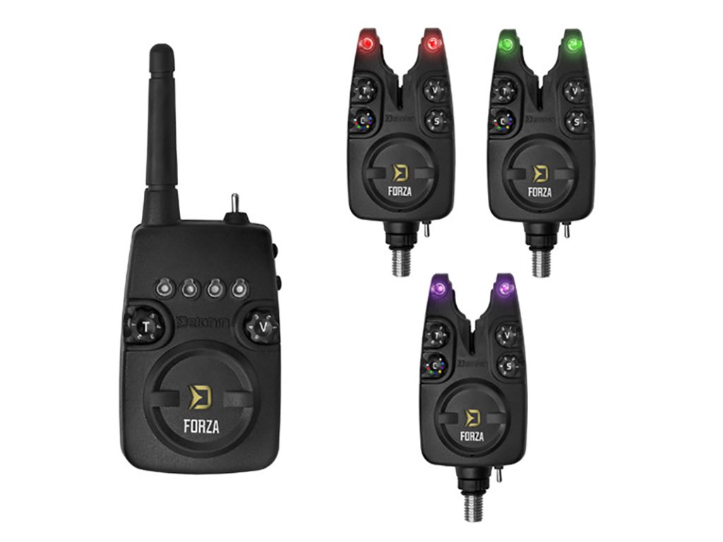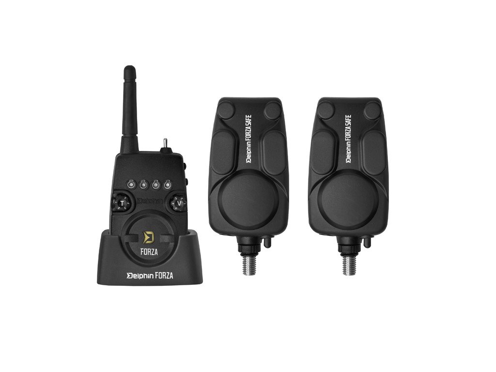 Delphin FORZA Life+ je sada signalizátorů s příposlechem poskytující spolehlivou světelnou, zvukovou či vibrační signalizaci záběru za každých okolností. Tělo signalizátorů a příposlechu je vyrobeno z černého pevného ABS plastu, což zaručuje odolnost vůči mechanickému poškození. Aspektem, který přispívá k dlouhé životnosti je také absolutní voděodolnost. Každý signalizátor je možné pomocí páčky přepnout do denního nebo nočního režimu. V případě nočního režimu se rozsvítí poziční LED dioda, díky které budete mít vždy přehled o rozmístění vašich prutů. Signalizátory disponují širokou škálou volitelných parametrů. Tón signalizace (spínač T) a citlivost v rozmezí 1-9cm (spínač S) lze navolit podle potřeby až z pěti možností. Při "padáku" resp. zpětném záběru budete upozorněni odlišným tónem. Hlasitost lze nastavit také v pěti různých úrovních, přičemž úroveň 0 představuje tichý mód. Nespornou devizou signalizátorů ze sady FORZA Life+ je možnost vybrat si ze 7 barev signalizační LED diody. Každý si tak vybere svou oblíbenou a pokud zatoužíte po změně, tak si jednoduše zvolíte jinou barvu pomocí otočného spínače "C (colour)" a nemusíte tak kupovat nový signalizátor. Ve spodní části se nachází vstup pro 2,5 mm konektor pro připojení svítícího indikátoru záběru. Každý signalizátor navíc disponuje závity na upevnění "snag gear", které jsou i součástí balení. Navíc k signalizátorům získáváte pevný transportní kryt a k přijímači stolní držák!