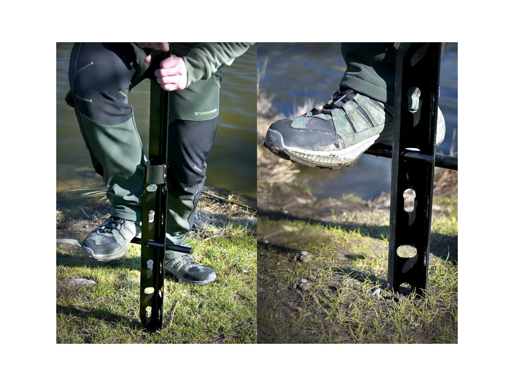 Stojan Delphin EXTREME je navržen na extrémní podmínky a hravě si poradí i s opravdu brutálmími záběry od kapitálních sumců. Robustní konstrukce je vyrobena z ocelového plechu, který je odolný vůči vnějším vlivům a nechtěnému mechanickému poškození. Spodní část konstrukce je opatřena ostrým hrotem, díky kterému lehce zapíchnete stojan i do tvrdší půdy. K lepšímu zapíchnutí dopomáhají i tři výřezy ve spodní části stojanu, do kterých můžete pro snazší zapichování vložit kovovou tyč, která je součástí balení. Díky masivní konstrukci zůstane stojan Delphin EXTREME po zapíchnutí do země stabilní a pevně osazený na svém místě.