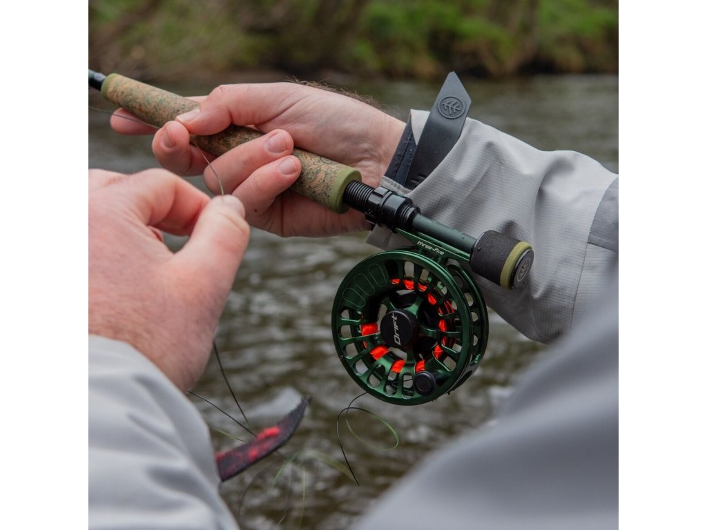 Tělo navijáku vyrobeno z hliníku třídy Billet 6061, který je ještě navíc podpořen odolným tvrdě eloxovaným zeleným povrchem, včetně plně utěsněného systému brzdového kotouče, tenkým profilem, v celo rámovém designu a to vše doplňuje právě jeho lehkost, která s grácií odolá úskalím moderních technik říčního muškaření. Specifikace: - jednoduchá výměna cívky na levou nebo pravou ruku - plně CNC obráběný hliník třídy 6061 - design plného rámu zlepšuje tuhost a je vynikající pro českou nymfu - hluboký profil cívky Deep V Spool pro dodatečnou nosnou kapacitu a velký diametr cívky pro sníženou paměť vlasce - bezpečný pro sladkou i slanou vodu - tvrdě eloxovaná, obráběná hliníková rukojeť se vzorkováním - utěsněná vícevrstvá kotoučová brzda na bázi uhlíku a teflonu - tvrdě eloxovaný matný povrch - včetně EVA pouzdra pro bezpečné uskladnění - navrženo v Anglii - AFTMA: 3/5 - kapacita: 5wt + 50 yardů 20lb podkladu - utěsněný brzdový systém - celo rámový design - barva: zelená - hmotnost: 146 gDoplňkové parametry