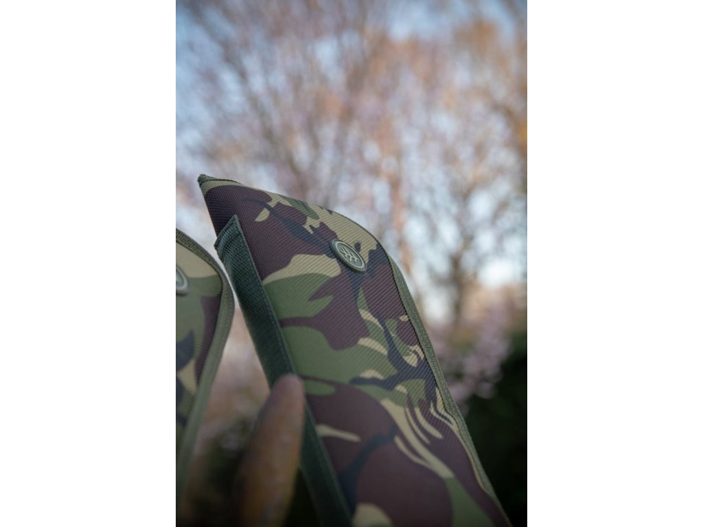 Chytrý design Over-Fit nepoužívá zip, tedy nedochází zbytečně k žádnému zdržování a zasekávání při vyjmutí a opětnému uskladnění vašeho prutu. Polstrovaný vnitřek pouzdra zaručí bezpečnost vašeho vybavení při transportu. Díky externí koncovce na prut, která je přichycena k pouzdru gumou, dochází k pevnému přichycení po celou dobu transportu. Každé pouzdro dodáváno včetně plně polstrovaného ramenního popruhu se zvětšenými karabinami pro jednoduché, avšak pevné uchycení. Díky tomu může být také každé pouzdro použito individuálně nebo současně s více pouzdry najednou. Specifikace: - pevný a odolný materiál Nylon 1200D - plně polstrovaná vnitřní komora - včetně externí vypínací ponožce pro maximální zabezpečení prutů při transportu - plně polstrovaný ramenní popruh se zvětšenými karabinami - použité pevné a odolné zipy Bespoke na postranní kapse - barva: kombinace zelené a camo - uskladní s přehledem pruty o délkách 3,00 m a 3,30 mDoplňkové parametry